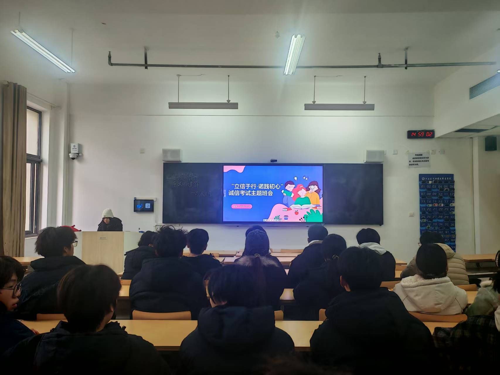 活动期间,各班级辅导员主持召开诚信考试主题班会,系统解读考试规章制度,结合以往违纪案例进行剖析。班会还设置了互动交流环节,引导学生开展讨论,深刻认识考试舞弊的严重性与其危害,从而在思想源头上筑牢诚信根基。班会结束后,全体学生郑重签署《诚信考试承诺书》,承诺自觉遵守考场纪律、坚决抵制舞弊行为,自愿承担相应后果,以书面形式许下诚信应考的庄严承诺。