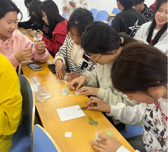 活动旨在让22级和23级的同学们在春意盎然的校园中,通过亲身体验手工制作的乐趣,感受春天和自然的美好。活动伊始,负责人向同学们详细介绍了干花制作的历史背景以及压花技术的由来,随后通过生动地演示,向同学们展示了如何制作一枚精美的干花书签。在负责人的引导下,同学们挑选了自己喜爱的书签样式,开始了充满创意的DIY之旅。在制作过程中,同学们小心翼翼地撕开薄膜,用镊子轻轻夹起那些薄如蝉翼的干花和树叶,将它们按照自己的想象摆放在书签上。每一次的摆放都是对美的一次探索,经过一番精心的拼贴和设计,一枚枚独具匠心的干花书签在同学们的手中诞生。