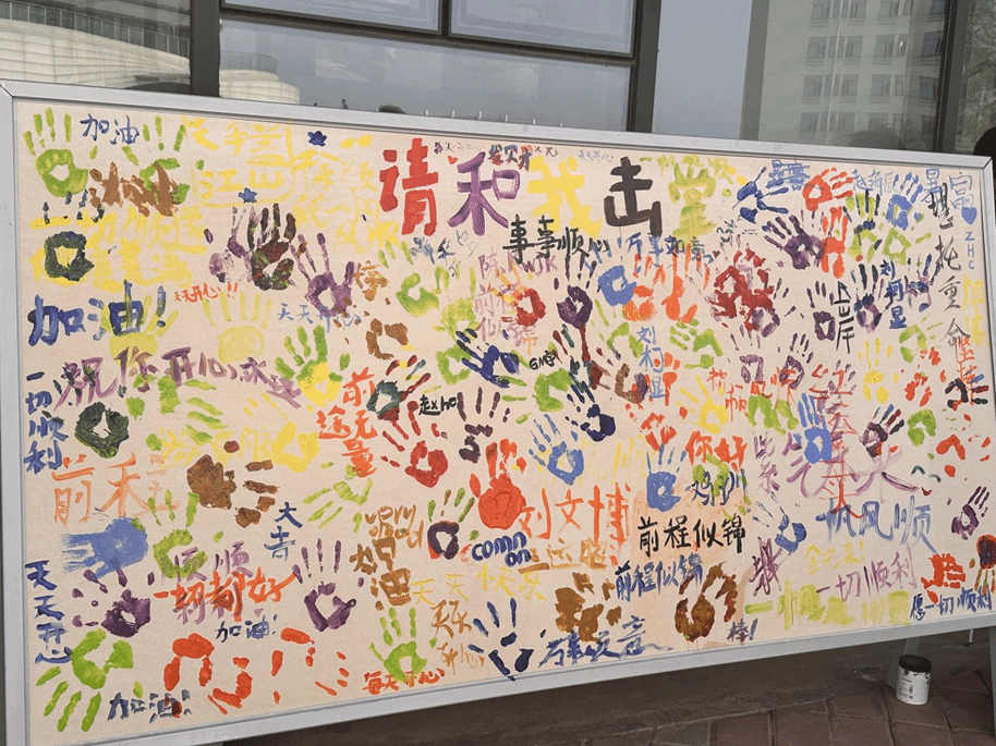 为给即将离校的毕业生送上真挚祝福,4月10日,yl6809永利集团组织开展"请与我击掌"主题祝福活动。活动现场精心准备了色彩缤纷的水彩笔及手套,为同学们搭建起传递心意的温暖平台。
