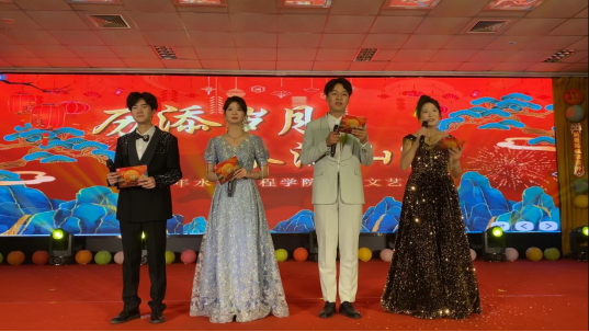 祥龙回首辞旧岁,金蛇起舞迎新年。12月19日晚,水利工程系在航空港校区德礼讲堂举办“历添岁月,春满山河”2025年元旦晚会。校党委副书记、副校长蒋彦成,纪委书记张志淮,校党委副书记、工会主席魏义军,副校长包永刚、王玉振,有关部门负责人,水利工程系教师及23级和24级学生代表参加。