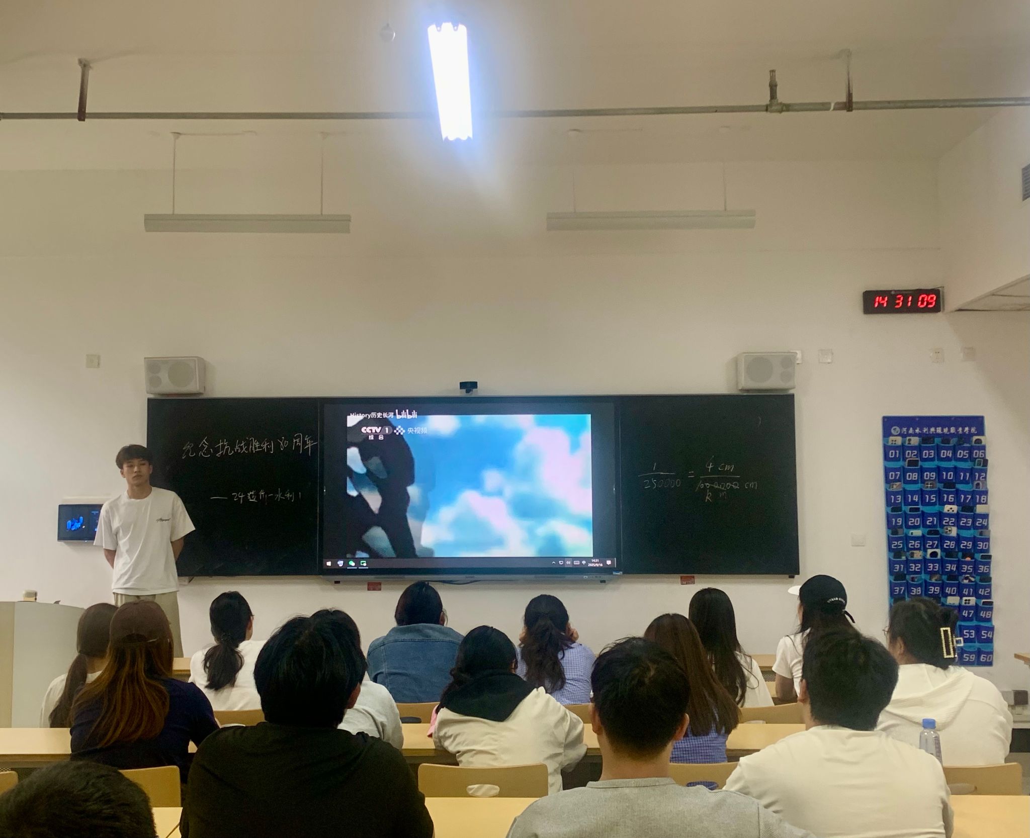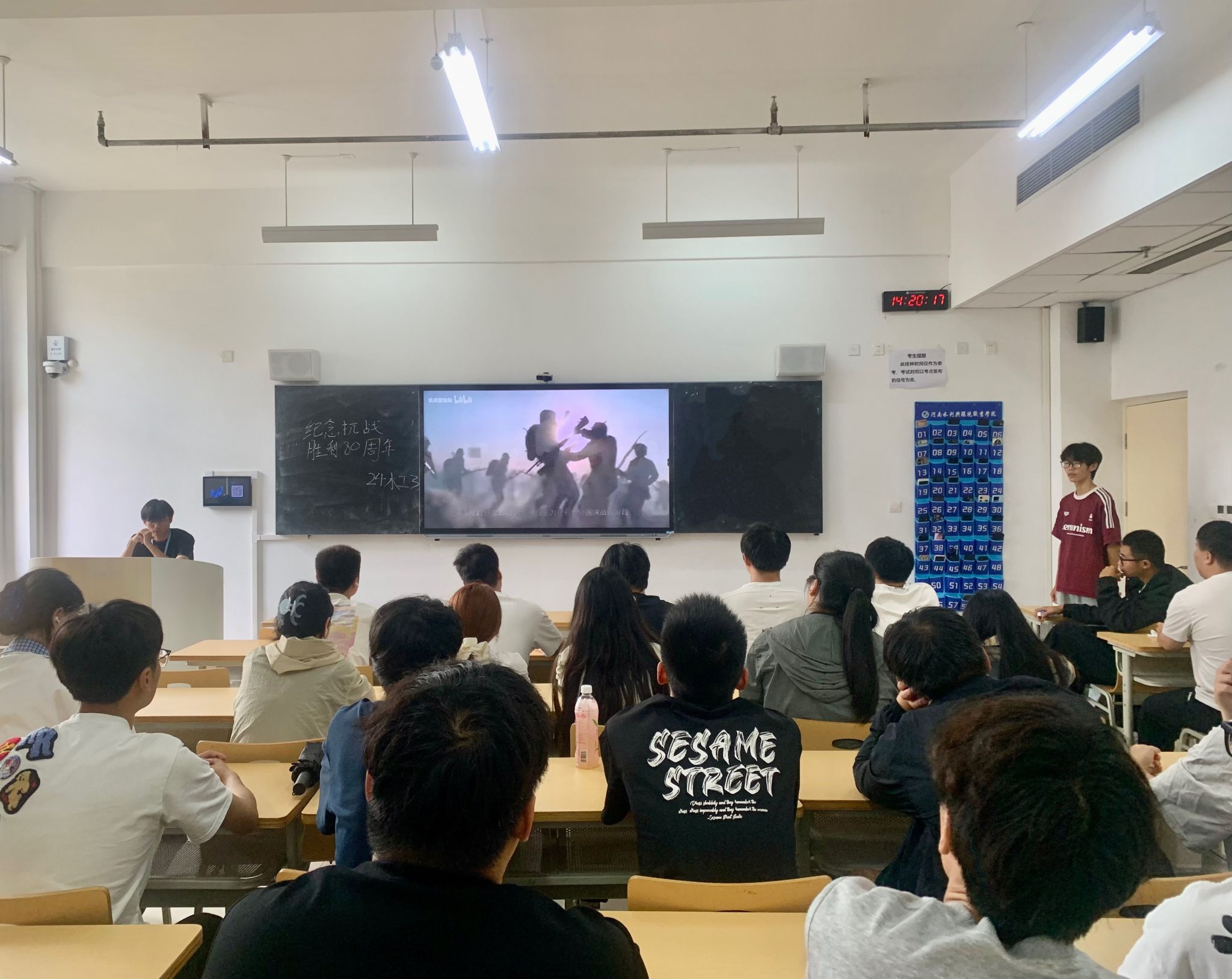 团课现场庄重热烈,同学们沉浸于红色历史的厚重与民族精神的洗礼之中。通过历史影像、抗战故事讲述和专题纪录片展播,大家深入了解了抗日战争艰苦卓绝的历程和伟大胜利的深远意义。荧幕上烽火岁月的真实画面、英雄先烈的感人事迹,令在场学生肃然起敬,神情专注。同学们在看到战士们奋勇作战片段时,现场多次肃然无声,部分同学感动不已、热泪盈眶。