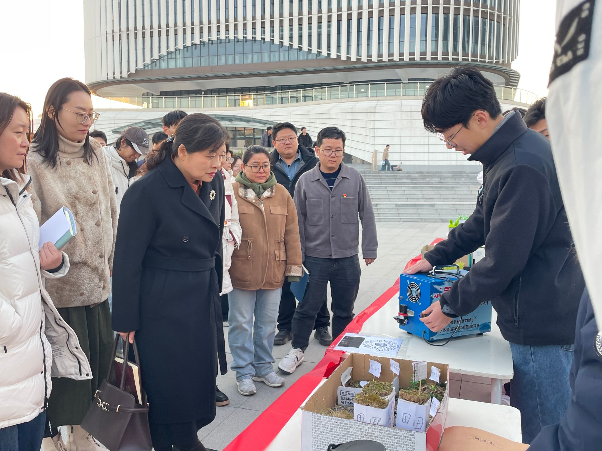 李志萍校长全程观摩,认真听取同学们的模型讲解,详细了解设计理念与实际应用。她对同学们将理论融入实践的能力表示充分肯定,并指出:“社团活动应进一步拓展内涵,推动水利知识、生态保护与校园文化的深度融合,引导更多同学树立科学节水观念。”同时,李校长对社团以真实场景延伸课堂的教学模式表示赞许,希望未来持续开展兼具专业性、教育性与体验性的活动,让师生在亲近自然中深化生态文明认知。