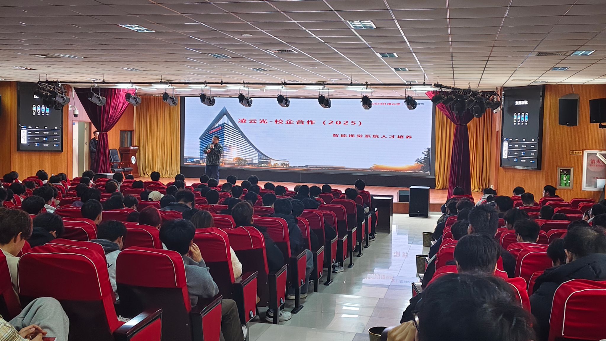 宣讲会上,凌云光技术公司围绕企业发展历程、核心技术优势及行业布局进行了全面介绍,作为国内领先的光技术创新企业,凌云光深耕机器视觉与光纤光学领域,具有突出的技术研发实力和行业影响力。富智康公司招聘负责人则结合当前低空经济发展趋势,重点介绍了企业在无人机维修、低空设备运维等方向的技术积累与业务布局,面向2024级毕业生开放无人机维修工程师、低空设备技术员、运维品质管理员等多个岗位。企业方详细解读了面向应届毕业生的专项人才培养与成长机制,推出“实习实训—考核转正—职业晋升”全流程成长通道,帮助毕业生实现从校园到职场的平稳过渡。