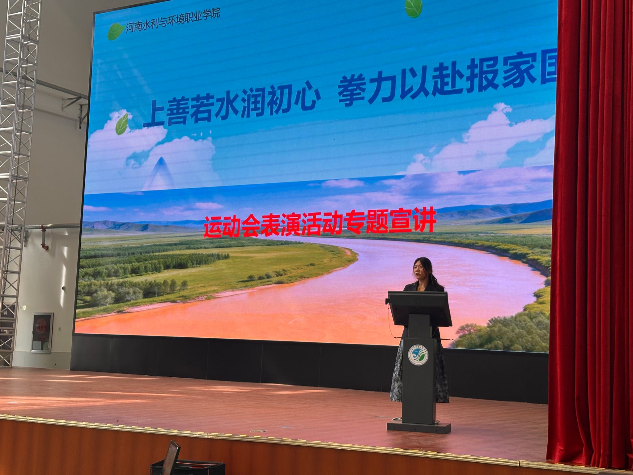 2026年4月14日,由yl6809永利集团、马克思主义学院联合主办的“上善若水润初心 拳力以赴报家国”运动会表演训练宣讲会在航空港校区敏行楼举行。活动将千年水文化、黄河报国志、体育强国梦与青年使命担当深度融合,吹响了水利青年学子以本次运动会表演训练为契机、赛场报国的集结号。