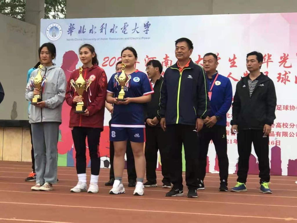 5月16日,由河南省教育厅主办,华北水利水电大学承办,河南省学生体育总会足球协会、河南省学生体育总会高校分会执行协办的河南省大学生第三届“五人制”足球比赛在华北水利水电大学落下帷幕,本次比赛共有来自全省的70多支队伍900多名运动员参加。我系19水电班徐梦柯、代琳创、陈佳琪;19造价1班周美霖;20水文1班牛印;20水建1班王景逵;20道桥2 班郭士峰7位同学经过学校选拔后参与此次比赛。经过体育教学部老师有效的专业指导和同学们为期1个多月的刻苦训练,最终在本次比赛中我校足球队斩获女子组第三名、男子组第六名的历史最佳成绩,展现了同学们积极向上的精神风貌。