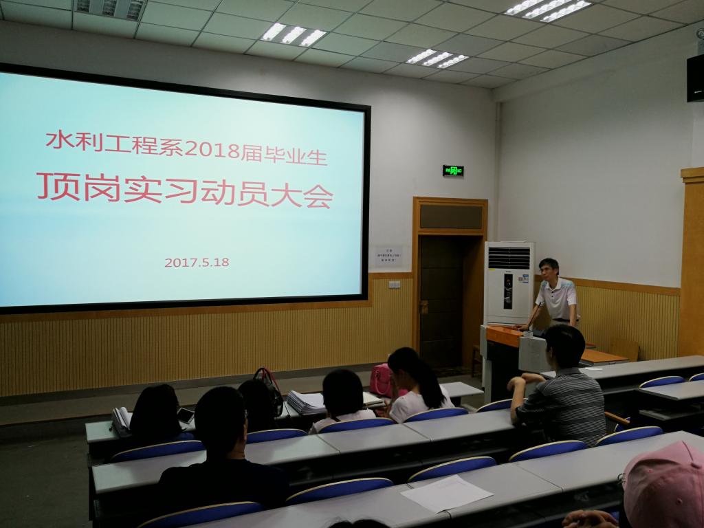届毕业生顶岗实习动员大会,系主任徐水平、支部书记李文林、副主任王建军、实习指导老师及各班辅导员、班主任参加。
