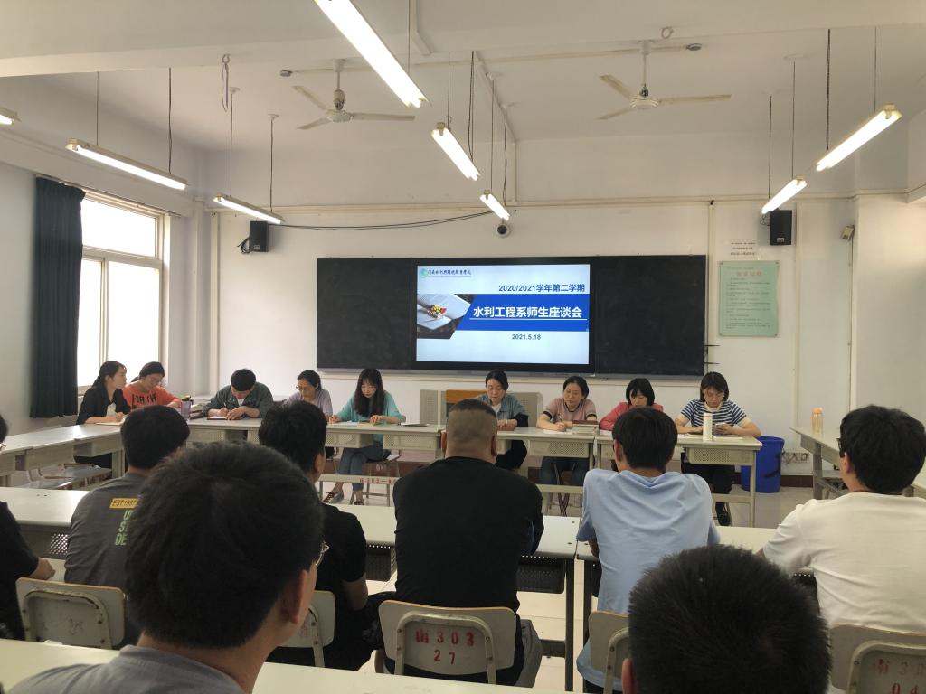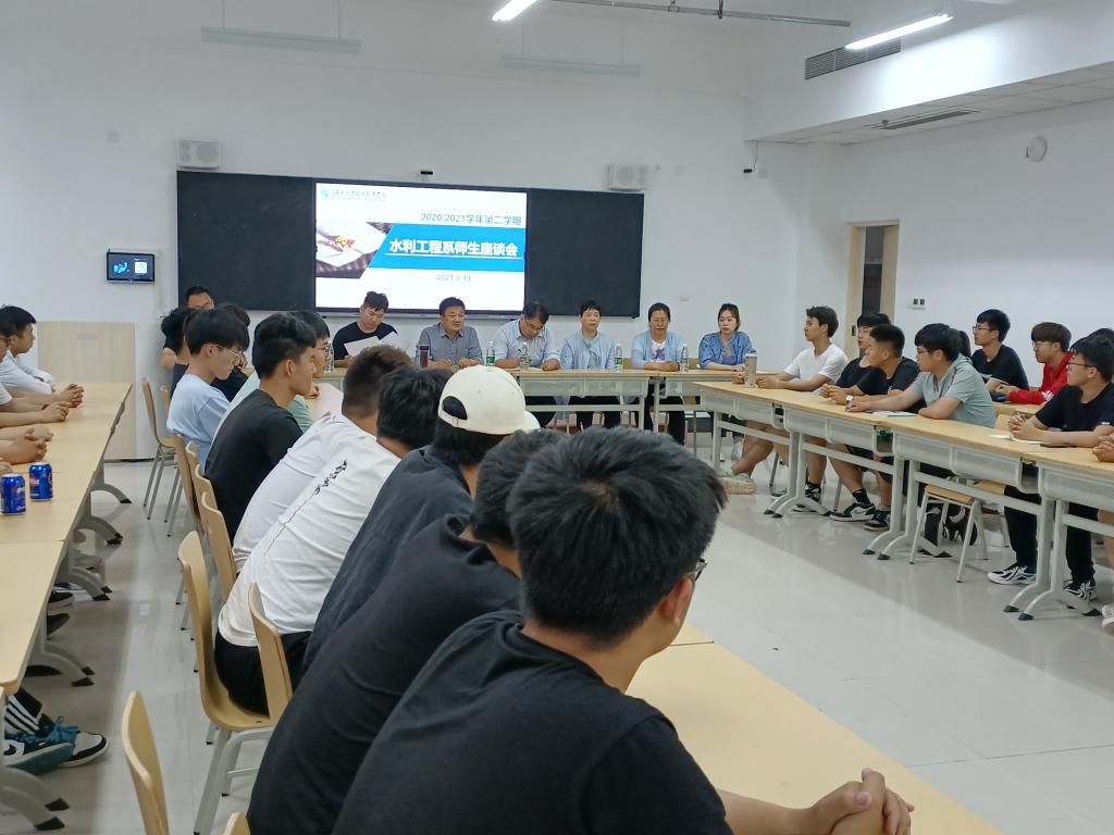 5月18日-19日,水利工程系召开2020-2021学年第二学期师生座谈会,系党总支书记卢德友、主任赵辰,全体教研室主任、班主任、辅导员及2019级、2020级学生代表参加。