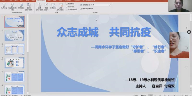 2月20日,水利工程系全体在校生各班按照学校要求分别组织开展“共同战疫”网络主题班会。