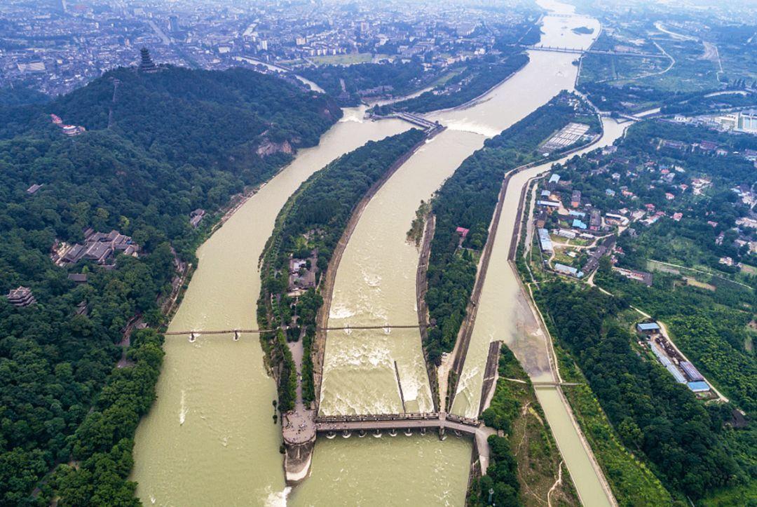 公元前256年,战国时期秦国蜀郡太守李冰率众修建的都江堰水利工程,位于四川成都平原西部都江堰市西侧的岷江上,距成都56公里。该大型水利工程现存至今依旧在灌溉田畴,是造福人民的伟大水利工程。其以年代久、无坝引水为特征,是世界水利文化的鼻祖。这项工程主要由鱼嘴分水堤、飞沙堰溢洪道、宝瓶口进水口三大部分和百丈堤、人字堤等附属工程构成,科学地解决了江水自动分流(鱼嘴分水堤四六分水)、自动排沙(鱼嘴分水堤二八分沙)、控制进水流量(宝瓶口与飞沙堰)等问题,消除了水患。1998年灌溉面积达到66.87万公顷,灌溉区域已达40余县。