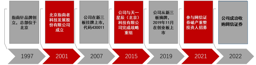 2022年指南针公司成功收购网信证券,成为我国第二家拥有券商牌照的互联网企业。依托在金融信息服务领域积累的客户资源、流量入口优势及营销优势,将实现传统证券业务与互联网、大数据等新技术、新模式的深度融合,打通客户服务链条,完成重大跨越,公司将全面步入快速发展期。而公司也将把网信证券打造成以金融科技为驱动,以财富管理为特色的全国知名金融服务商。