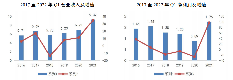 2019年到2021年公司营业收入分别是6.23亿元、6.93亿元和9.32亿元,同比分别增长7.84%、11.18%和34.63%,保持连续三年增长,且增速不断提升。2022年一季度营业收入同比大幅增长89.51%至6.23亿元,与2019年持平;归属母公司净利润同比大幅增长176.50%至2.67亿元,已超过2021全年。